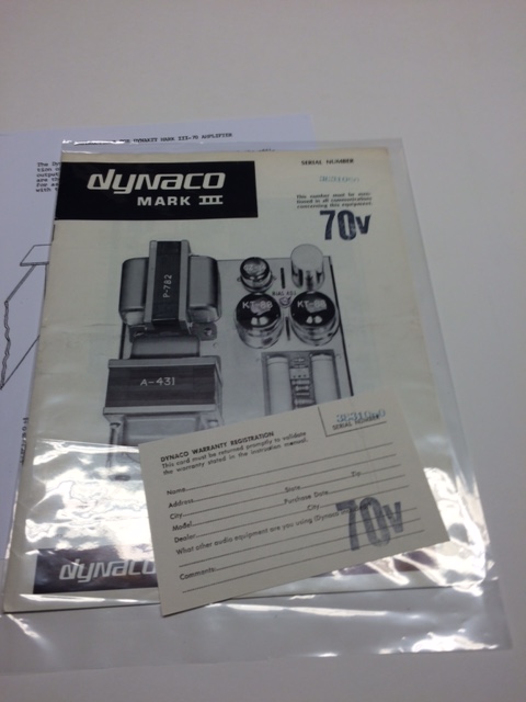 Kit also includes an original (not a photo copy) Dynaco MK III 70V manual, factory insert page and warranty card…As an added bonus…I will include One (1) NOS Dynaco labeled & boxed 6AN8A tube at no additional cost. Purchase includes a (60) day warranty on all kit components (less tubes).
